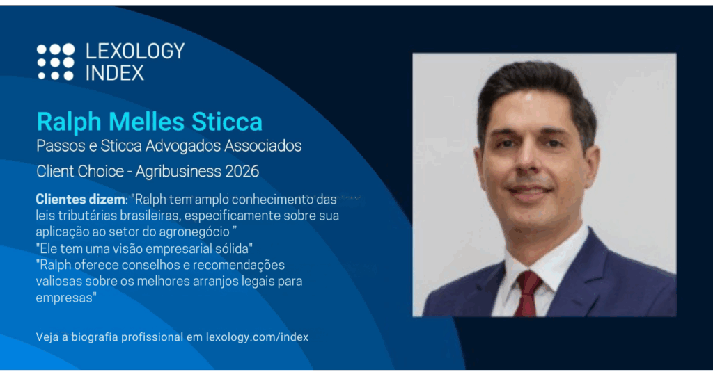 O sócio-fundador do PSAA, Ralph Melles Sticca, foi eleito pelo segundo ano consecutivo pela Lexology Index como Client Choice em Agribusiness 2026!